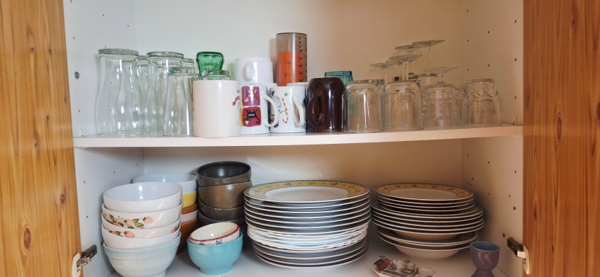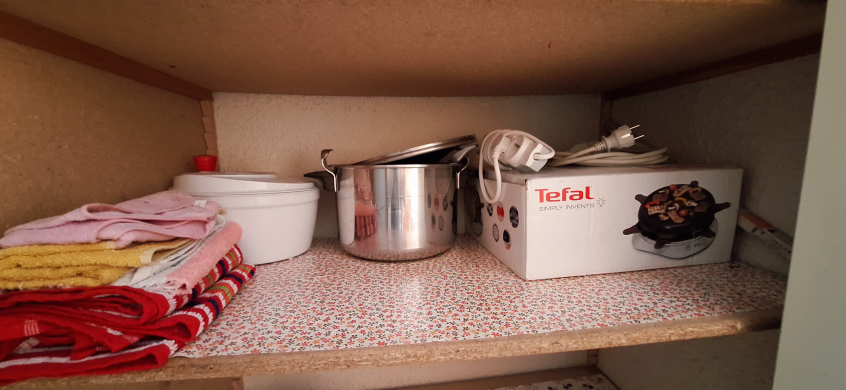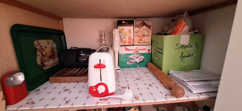 Lave linge, lave vaisselle, frigo-congélateur, cafetière, bouilloire.