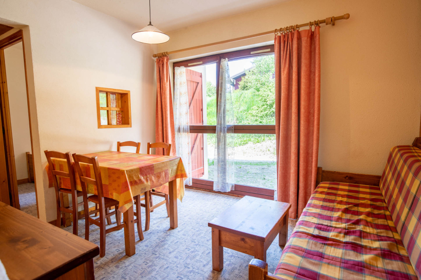 APPARTEMENT 2 PIECES 4 PERSONNES CONFORT de 30 m2, situé au rez-de-chaussée, exposé ouest, avec terrasse, à 250 mètres environ des pistes.