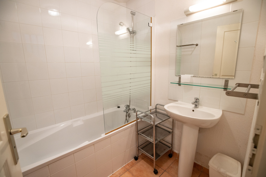 Salle de bain : baignoire, lavabo