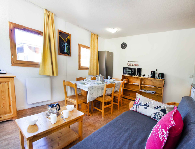 APPARTEMENT 3 PIECES 6 PERSONNES de 45m² situé au 3e étage avec ascenseur, exposé nord-est avec 2 balcons et une grande baie vitrée avec vue sur la vallée.