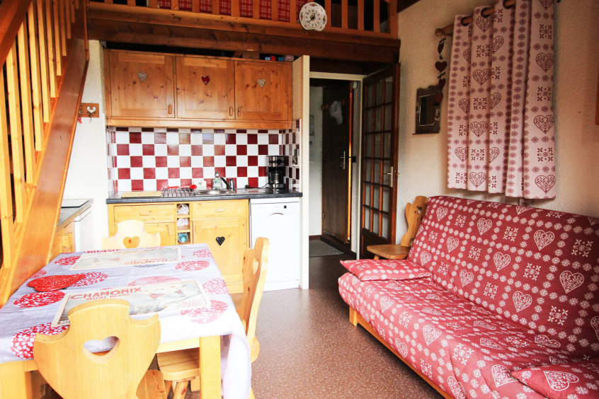 APPARTEMENT 2 PIECES MEZZANINE 4/6 PERSONNES de 35m² situé au 1e étage avec balcon, exposé Sud-Ouest, à environ 500m du centre du village et des pistes.