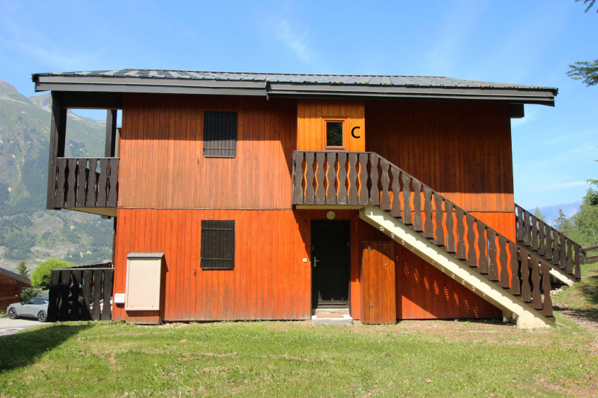 LES EPERVIERES - Lotissement de petits chalets à l'orée de la forêt, divisés en 6 appartements. Les chalets sont situés sur le haut de la station à 400m du centre station et du départ de la télécabine, sous la piste de ski verte retour station.